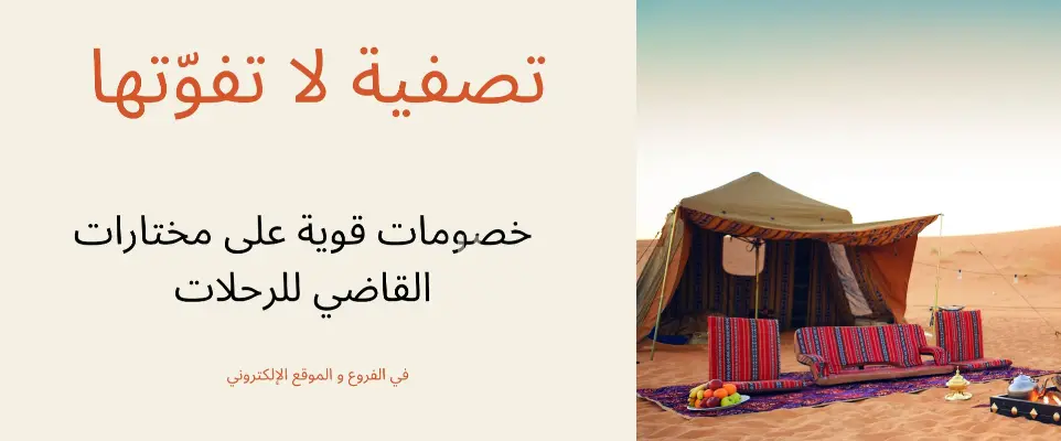 Mekshat Tents, winterized Mabeet Tents, Discovery Tents, Desert Tents, Luxury and Royal Tents, Inflatable and Used Tents, Four Seasons Tents and Mattresses, Sleeping Bags, Jazirah and Rimal sleeping bags, Discovery Gear, Camping Stoves, Outdoor and Beach Chairs, Diwaniyah Tents, Shaqardiyah Shades, Travel Canopies, Bar Camps, and Coffee & Tea Setups – All from Kadi Outdoor.